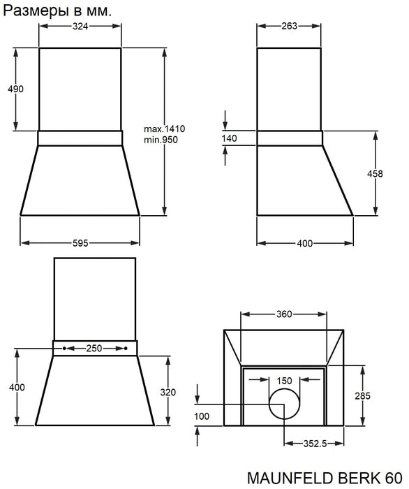 Мощность мотора составляет 260 Вт. Максимальная производительность вытяжки достигает 1270 м3/ч, что позволяет использовать ее на очень большой кухне.