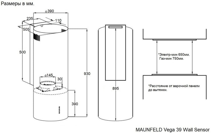 Кухонная вытяжка MAUNFELD Vega 39 Wall Sensor LED белый