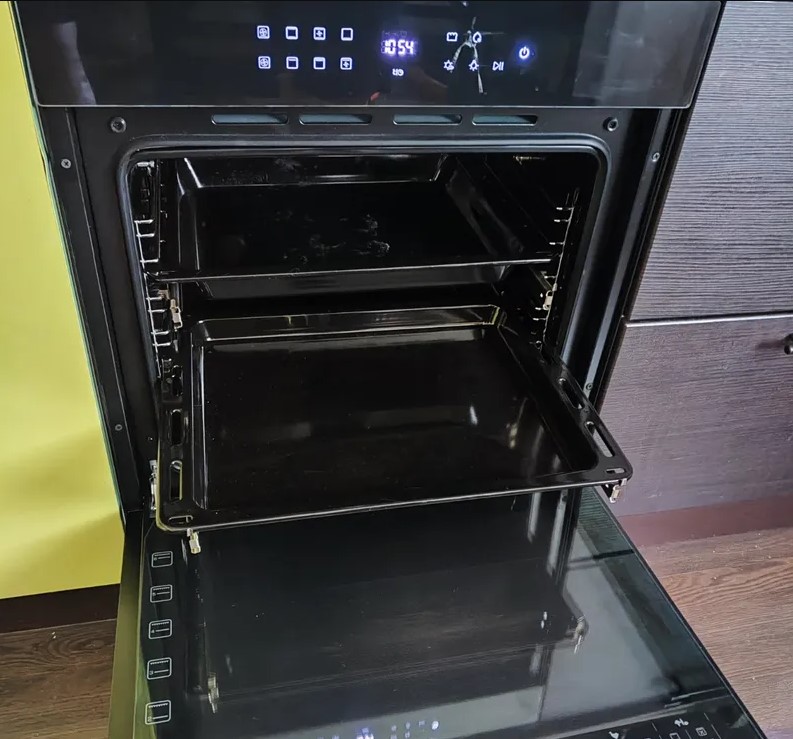 Дверца с доводчиком состоит из трех стекол, что создает холодный фронт и делает процесс приготовления безопасным, исключая возможность ожога при касании.