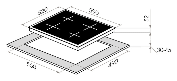 - Автоматическое отключение в случае перегрева, долгого простоя работающей конфорки и попадания влаги на поверхность готовки.