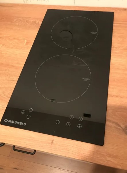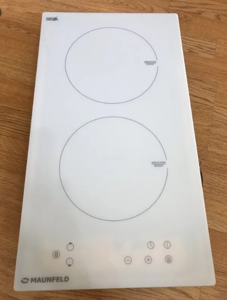 2-х конфорок составляет 180 мм. Одна конфорка мощностью 1500 Вт (бустер 1800 Вт), вторая - 2000 Вт (бустер 2300 Вт).