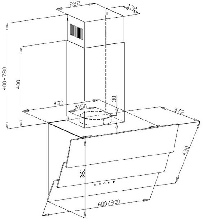 Стандартные размеры вытяжки — 50, 60, 90 и 120 см. Совершенно точно она должна быть не меньше всей поверхности плиты или варочной поверхности, иначе со своими «очистительными» обязанностями справляться будет хуже. Что касается высоты, обычно устройство устанавливается на 60 см. выше уровня плиты, но этот параметр может варьироваться в зависимости от модели и роста жильцов квартиры.